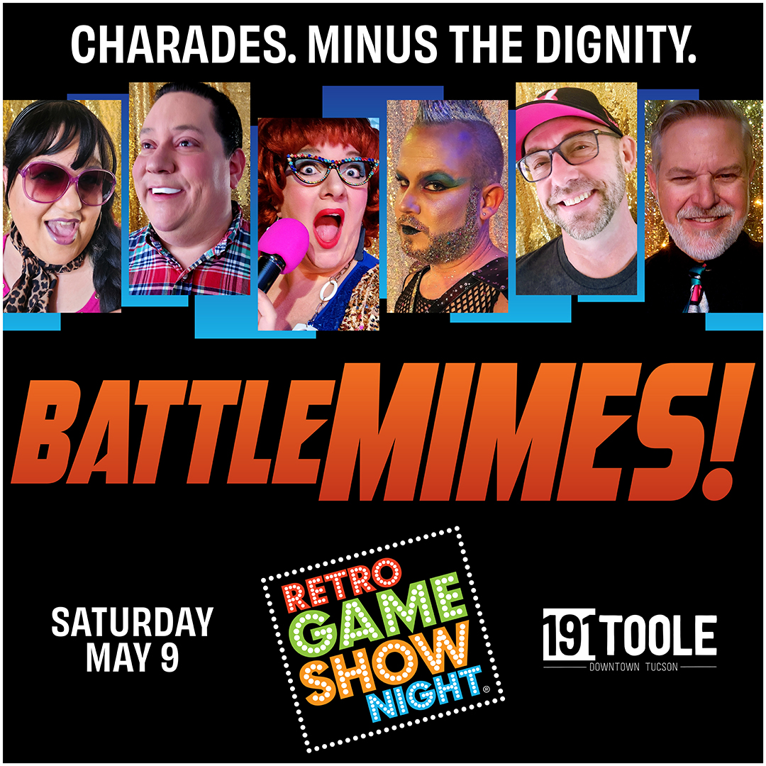 Retro Game Show Night returns to 191 Toole with Battle Mimes – our original, mask-heavy, wordless take on team charades where gestures get wild and guesses get worse. Hosted by Chatty Kathee with Swish Manley and featuring Parker and Nelmar 27 McGee, it’s silent… and somehow louder than ever.